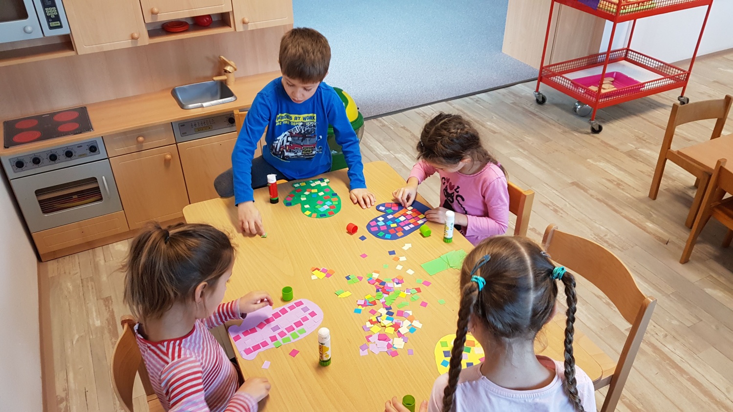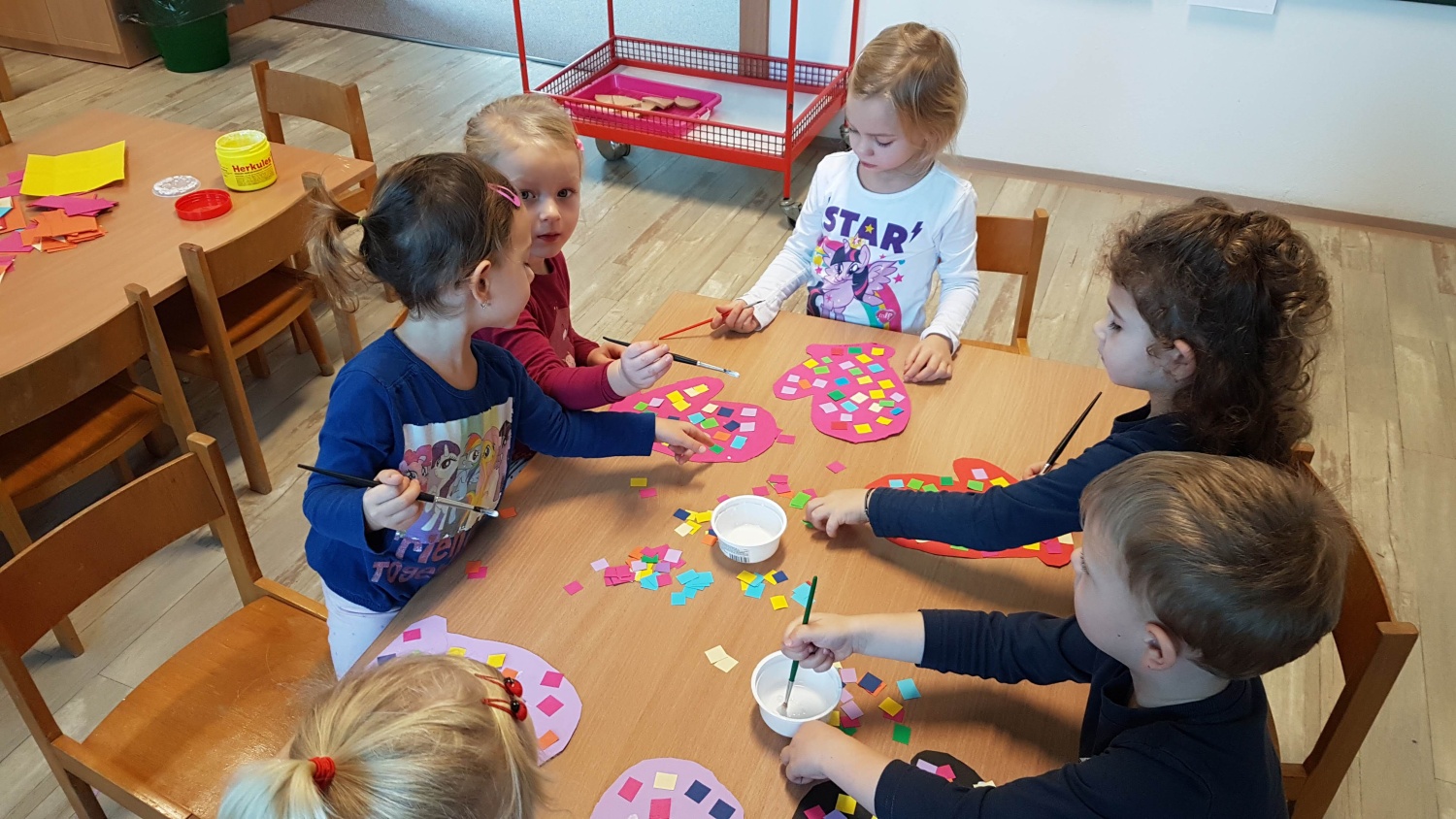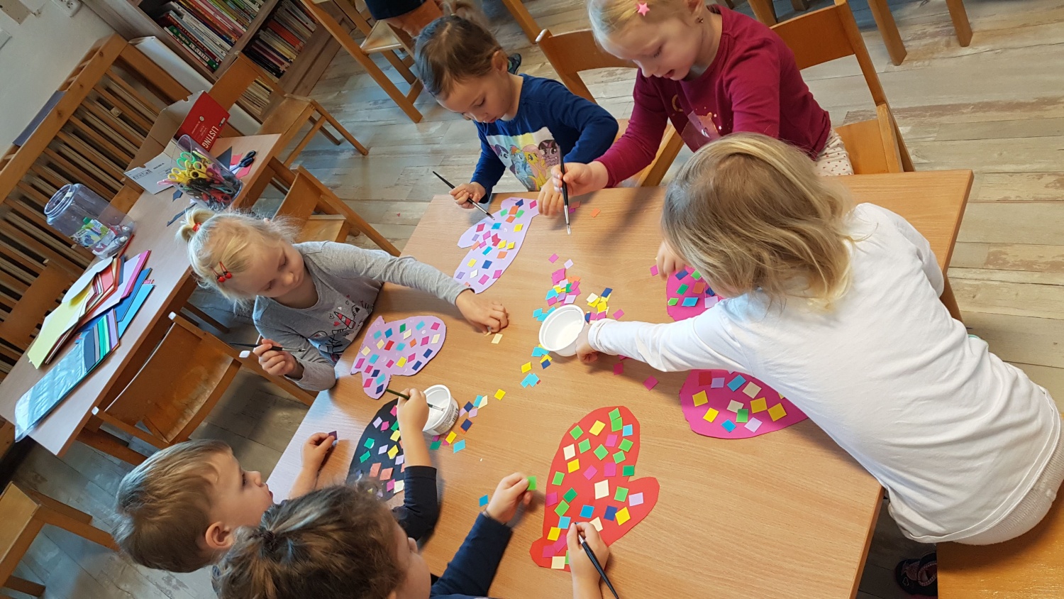 Rádi tvoříme. Výroba tříkrálové koruny, zdobení rukavic, provlékání třásní do papírových šál.