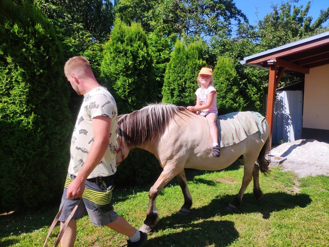 Byl nám umožněn blízký kontakt se zvířaty a měli jsme také možnost zvířata nakrmit. V kulturním areálu obce byl pro děti zajištěn zábavný program. Nejvíce se dětem líbila jízda na koních a bublinková show. Krásné dopoledne jsme zakončili na dětském hřišti.