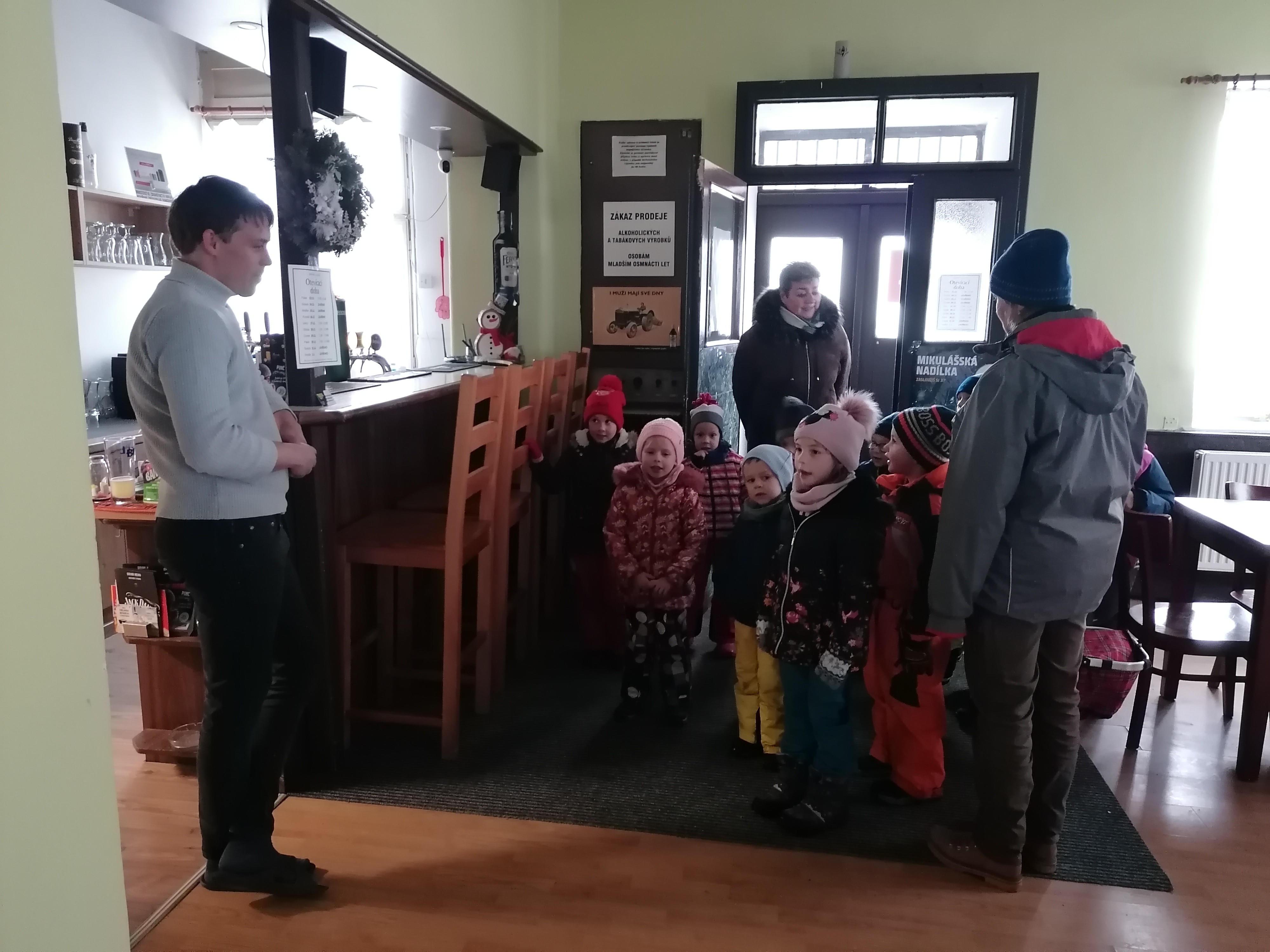 Pár dnů před Vánocema děti rozdávaly vánoční náladu mezi lidmi v naší obci. Navštívili jsme obecní úřad, poštu, obchod, Lagris i místní pohostinství a všem jsme koledovali, zpívali, přednášeli a dělili se o naši radost. Všechny jsme tak příjemně vánočně naladili a vykouzlili jim úsměvy na tvářích.